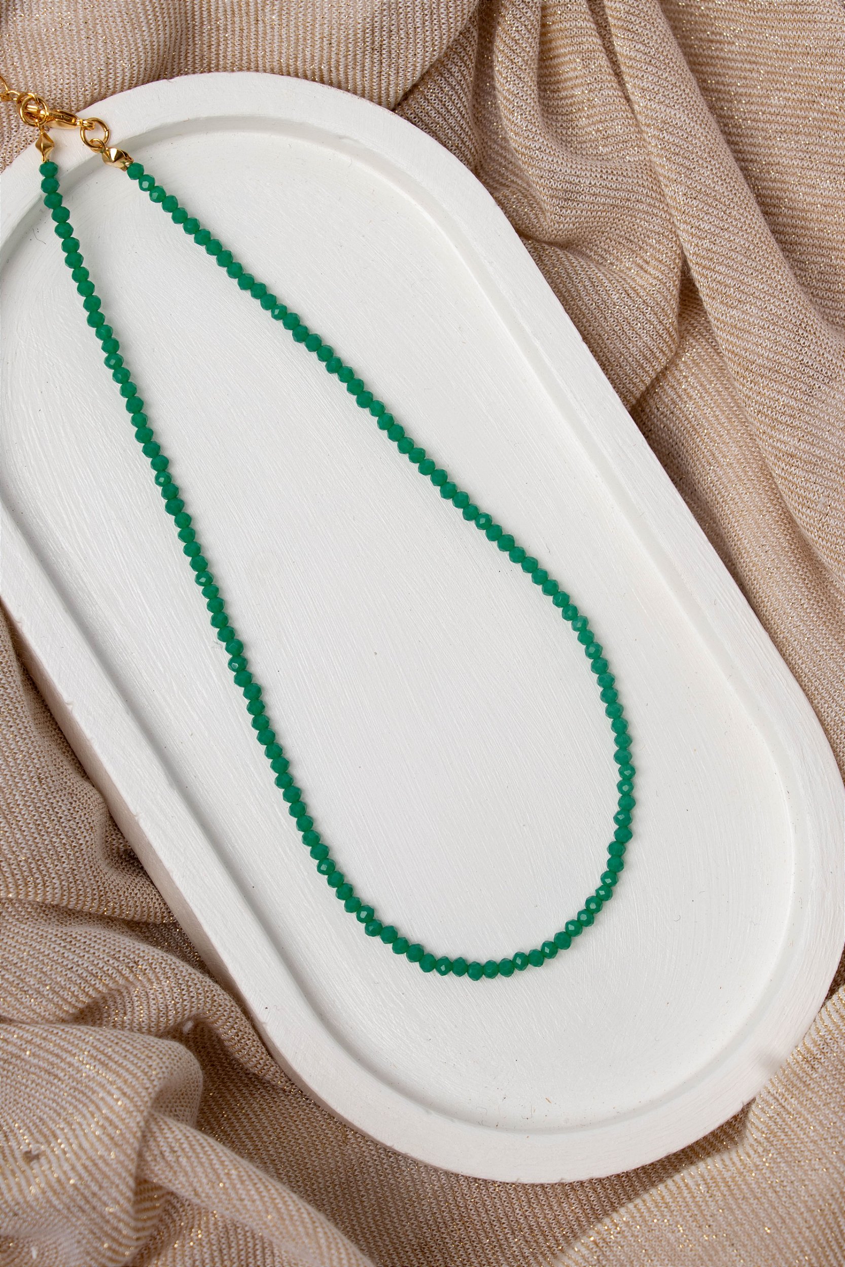 ✓ FICHA TÉCNICA — COLAR CURTO DE CRISTAIS VERDE ESMERALDA